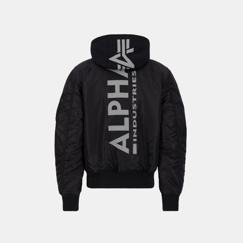 Alpha Industries MA-1 Zip Hood Back Print Bomber Jacket Black/Reflective