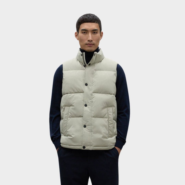 El chaleco Sadel es de nylon reciclado, un material que promueve la economía circular. Su composición lo hace perfecto para los días más fríos del invierno, mientras que su exterior repelente al agua te protegerá de la lluvia.