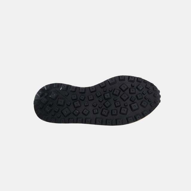 Zapatilla baja fabricada en tejido técnico y ante, con cintas laterales y cordones de trekking. Plantilla de corcho natural antibacteriano y suela de goma ultraligera con dibujo dentado.