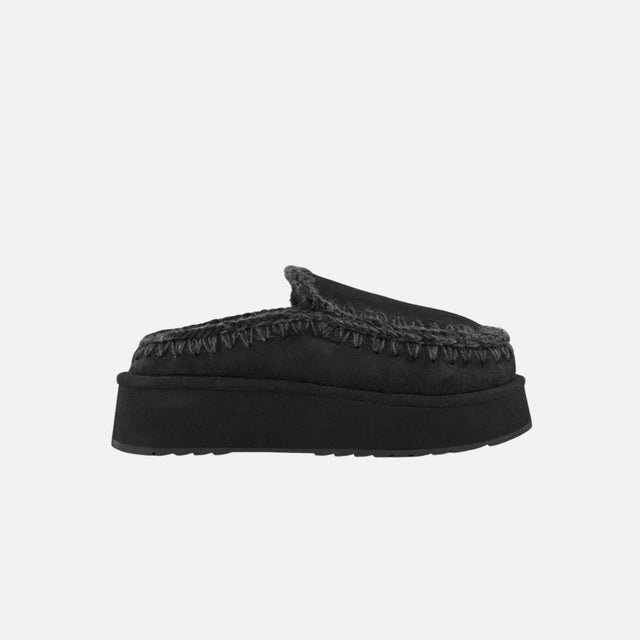 Novedad para la temporada Otoño-Invierno 24, los zuecos de plataforma eskimo slip-on están realizados a mano por artesanos expertos en lujoso ante con las características costuras de lana de la marca. Increíblemente cómodas y resistentes con suela de EVA. Altura 18 cm.