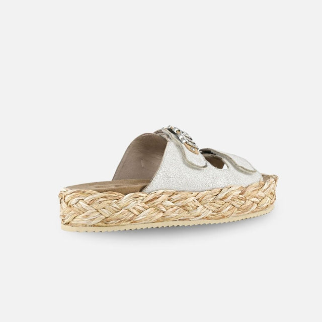 Mou Raffia Braid Sandal Leather Upper Crackled White