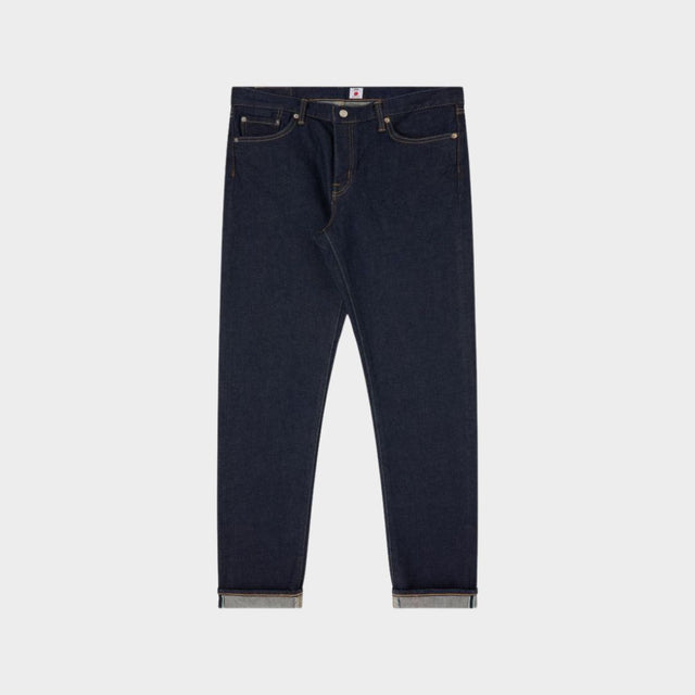 La colección "Hecho en Japón" ofrece un producto único sin competencia directa en términos de calidad, precio y procedencia "Hecho en Japón". Adoptando los aspectos más tradicionales de la colección premium de mezclilla japonesa, los jeans Regular Tapered están confeccionados con tela vaquera elástica azul Kaihara de 12,5 oz y orillo verde x blanco.