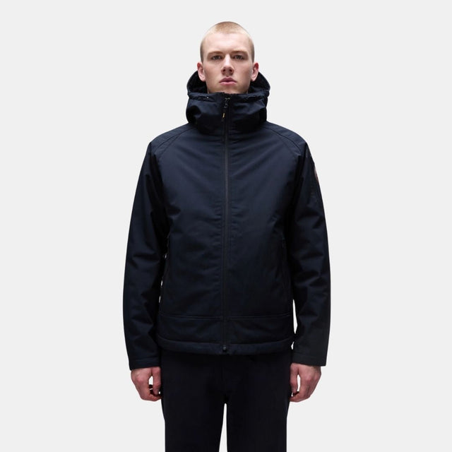 La chaqueta corta Lorze, máxima expresión de la colección cápsula monomaterial Made of One, protege de la nieve y las lluvias ligeras. Esta capa de invierno está elaborada en poliéster 100 % y acabada con dobladillo y capucha ajustables, bolsillos interiores y detalles distintivos de Napapijri. MADE OF ONE En la elaboración textil, la mezcla de fibras es común, pero difícil de reciclar. Separar las diferentes fibras textiles que conforman un mismo tejido es una tarea costosa y lenta que, a menudo, frena los proyectos de reciclado. Por eso, hemos creado Made of One, una línea de productos que contienen una sola fibra textil en su composición. De esta forma, las fibras pueden reciclarse fácilmente, lo que reduce la creación de residuos y promueve una propuesta de moda circular.