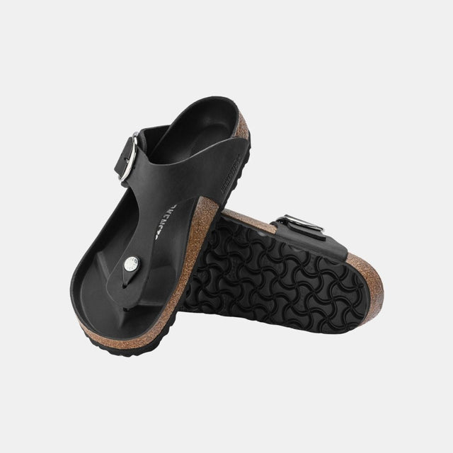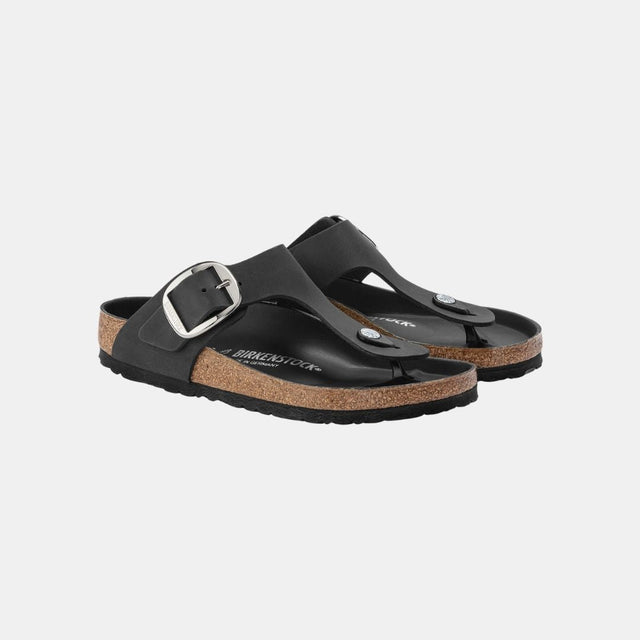 El modelo Gizeh de BIRKENSTOCK es un auténtico clásico que aúna sujeción óptima y un elegante diseño minimalista. Esta variante Big Buckle (hebilla grande) utiliza una elegante hebilla grande de espiga, que funciona como punto de atracción visual en esta sandalia bastante sencilla en sus demás aspectos. La capa superior de la plantilla semi-exquisite está forrada con piel lisa en color a juego con el zapato. El material superior es de piel nubuc especialmente gruesa y engrasada, confeccionada sin costuras en los bordes.