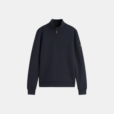La Sudadera Betren está fabricada con un tejido principal de 75% Poliéster reciclado, 16% Viscosa y 9% Elastano. Tiene un forro de 100% Algodón orgánico. El poliéster reciclado reduce el uso de recursos fósiles, emisiones de CO2 y consumo de agua y energía, al reutilizar residuos plásticos como botellas PET, manteniendo las propiedades del poliéster virgen.