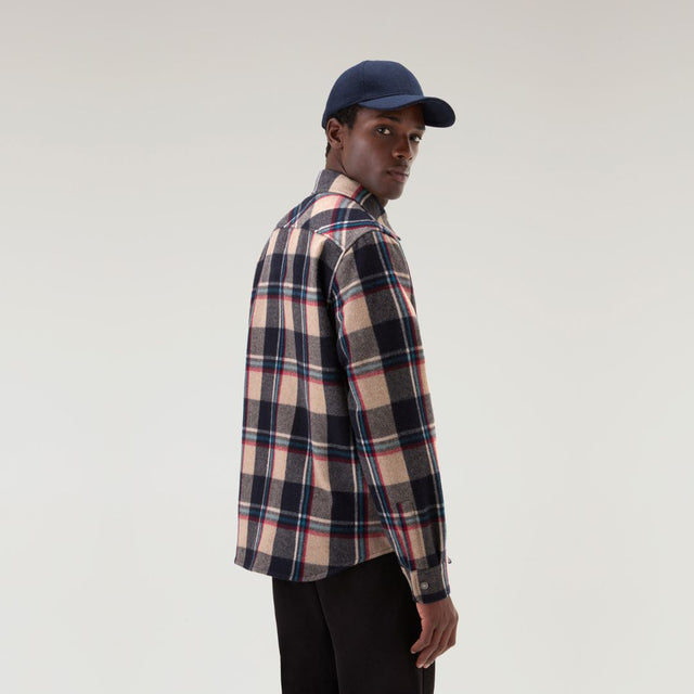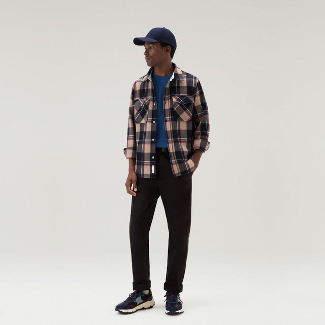 La sobre camisa Alaskan confirma el encanto atemporal de nuestro inconfundible estampado de cuadros, mostrando un motivo de archivo de Woolrich. Confeccionada con tejido teñido en hilo de mezcla de lana italiana reciclada, su línea limpia está enriquecida con bolsillos aplicados para crear un efecto patchwork. Está rematado con una serie de detalles inspirados en la ropa de trabajo, incluido el clásico cuello en punta y cierres de botones (con logo) en los bolsillos y puños.