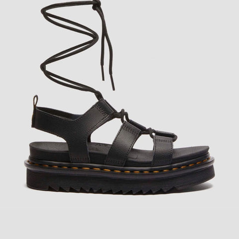 Deshazte de las botas y quédate con los cordones. La sandalia Nartilla inspirada en los gladiadores se asegura con un cordón extra largo que se extiende hasta la pierna o se ata bajo alrededor del tobillo, tú decides. Diseñada para un estilo veraniego cómodo, tiene nuestra plantilla de espuma viscoelástica SoftWair y una suela ligera de EVA Zebrilus. La suela tiene ranuras y ribetes con las costuras amarillas de DM, y la correa del tobillo está etiquetada con nuestra presilla de talón negra y amarilla.