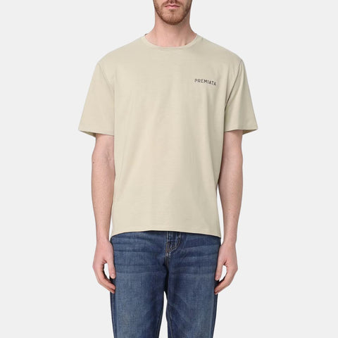 Camiseta de jersey de algodón suave con aberturas en la parte inferior y bajo trasero más largo. Detalle de ribete de hilo en color de contraste y logotipo "PREMIATA" estampado en el pecho izquierdo. Nuestra insignia de tres agujeros en el centro de la espalda está hecha a láser y se pegó con transferencia térmica de PU.